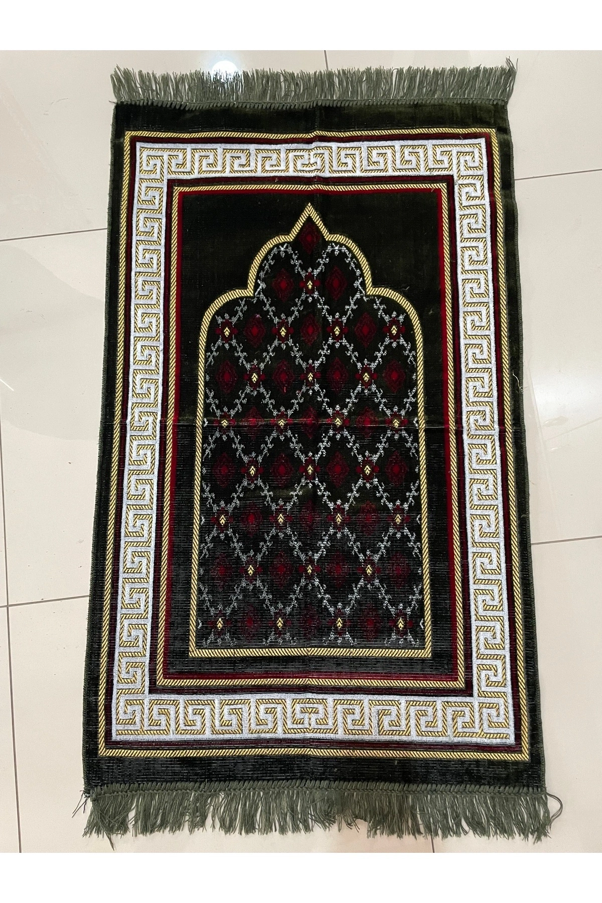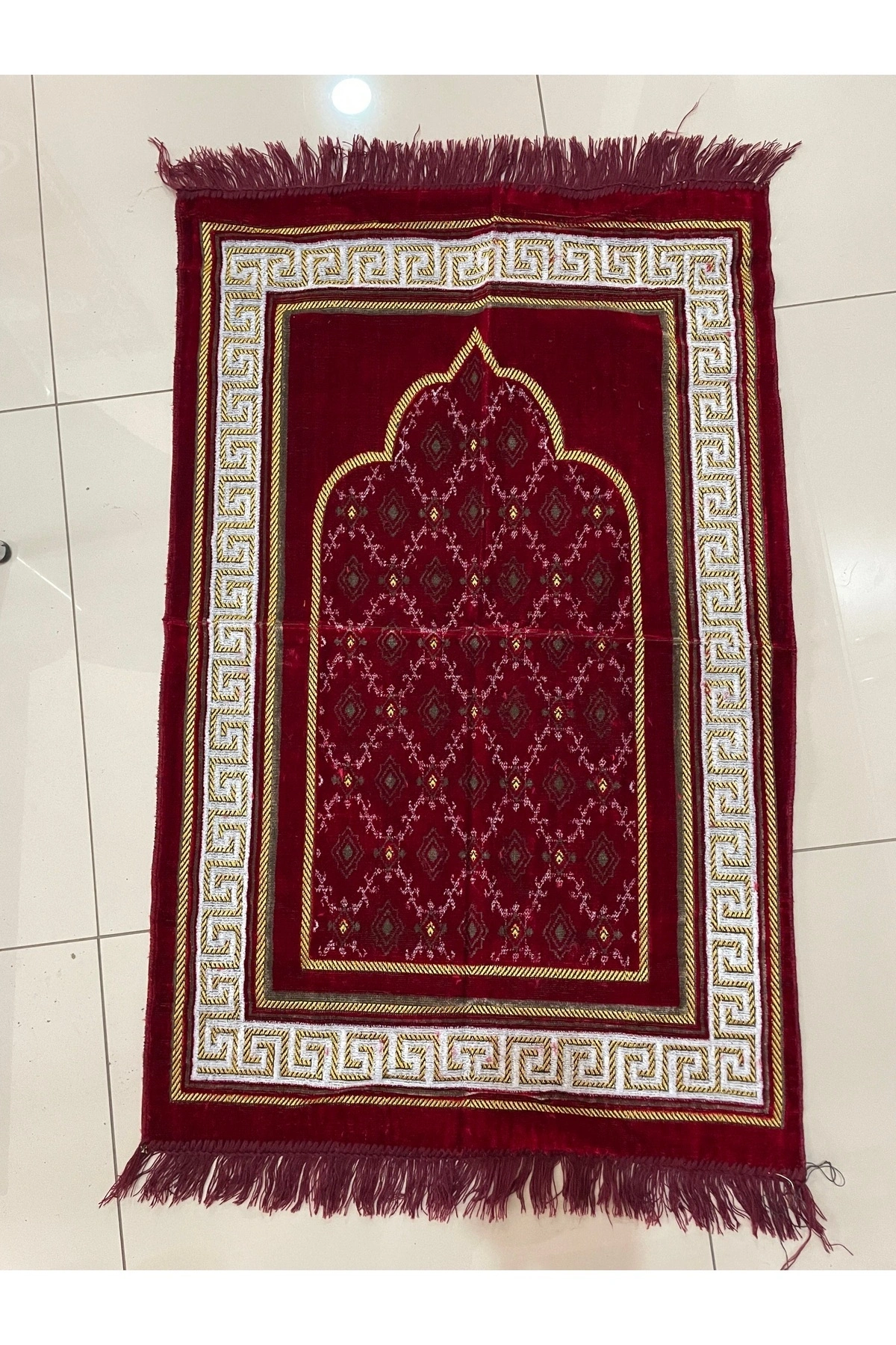 Kadife Püsküllü Seccade Bordo