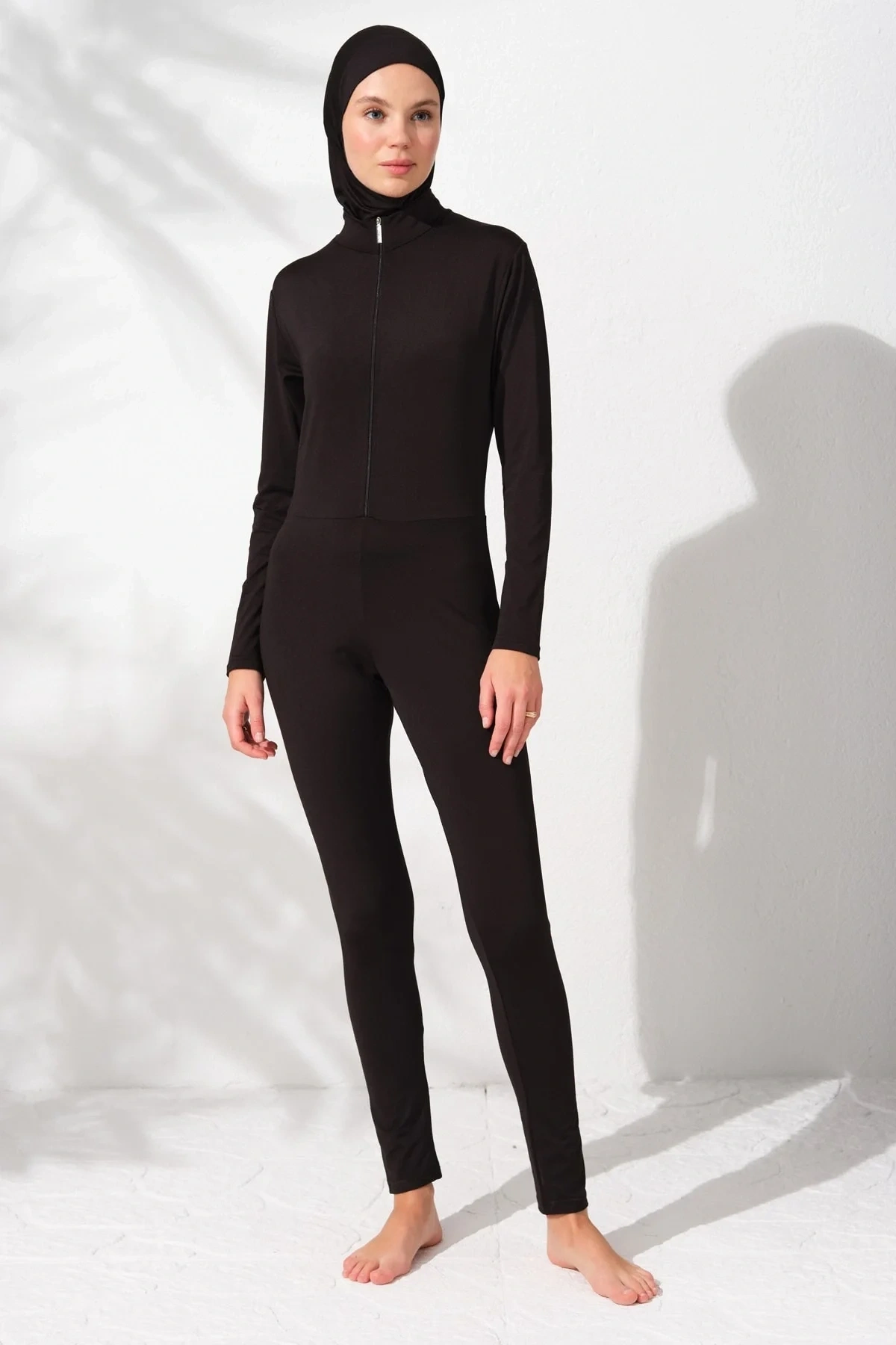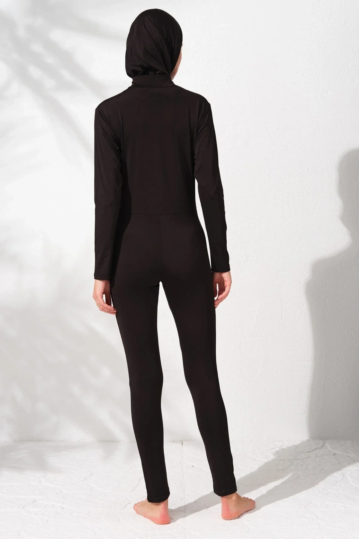 Fileli Tesettür Tulum Mayo Siyah 231919