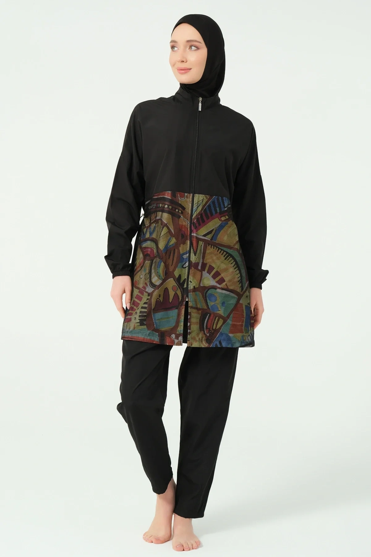 Desenli Anvelop Etek Detaylı Tesettür Mayo