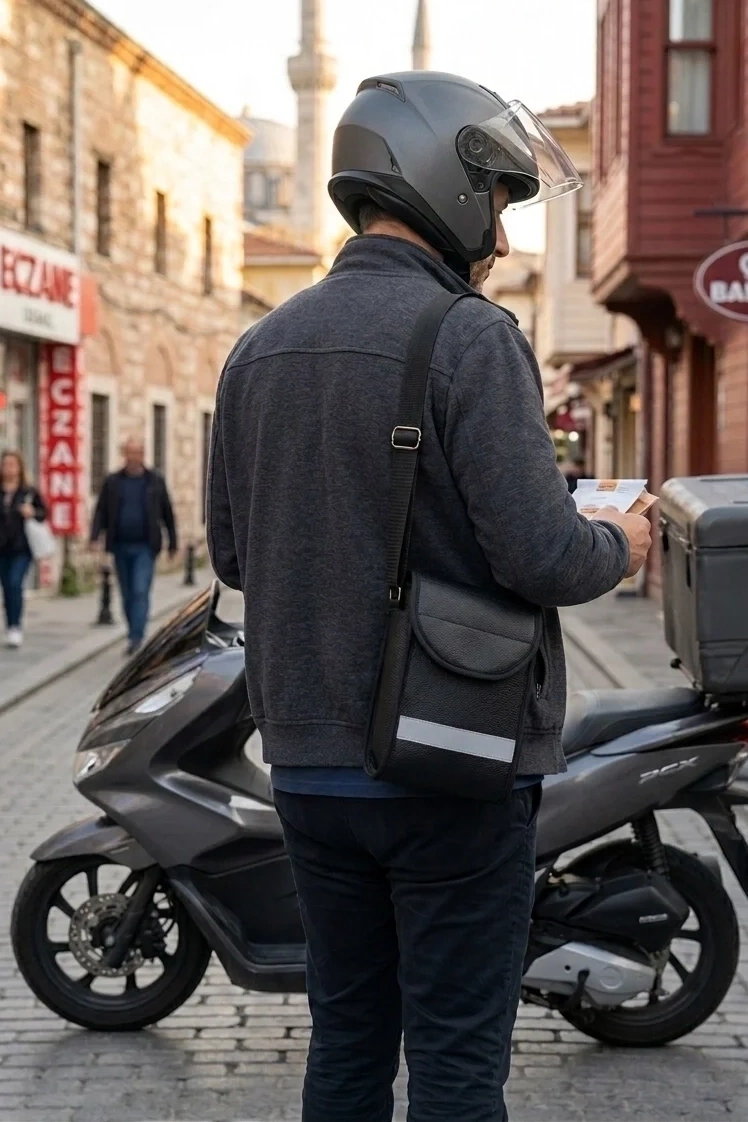Motosikletli Kuryeler ve adresten tahsilat için çok tercih edilen bir çantadır.